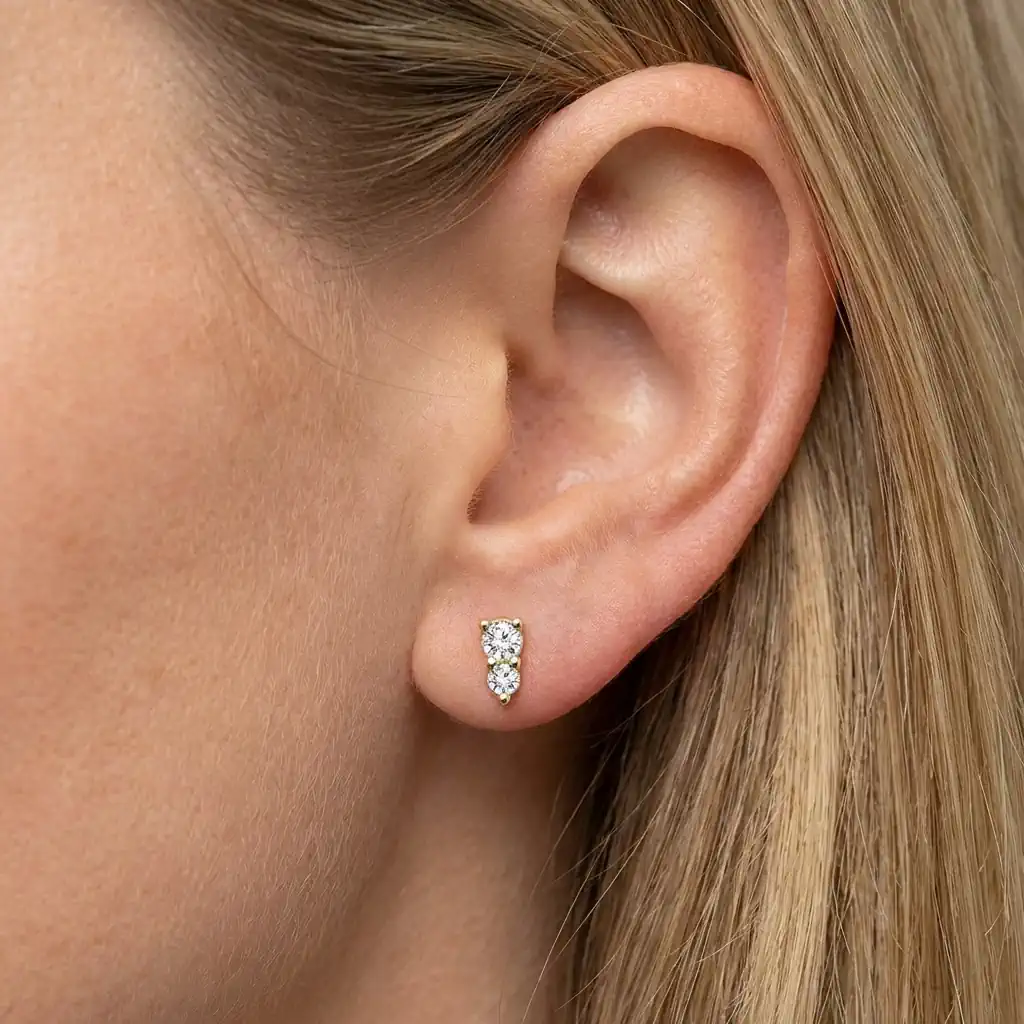 These two-stone diamond studs offer a refined twist on the classic stud look. With a balanced, symmetrical design, they feel elegant and modern—without sacrificing the timeless appeal that makes diamond studs a long-term staple.