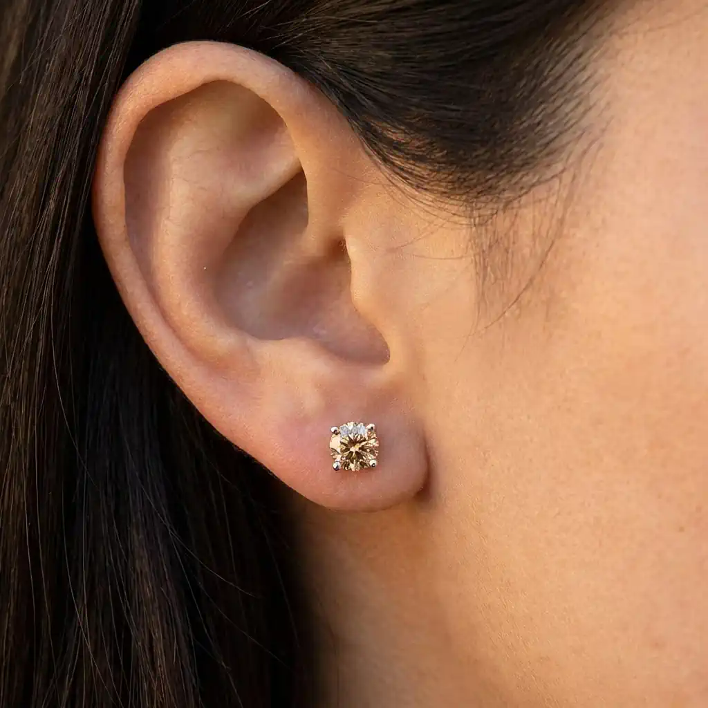 For those who appreciate subtle color and individuality, this champagne diamond stud adds a warm, understated sparkle. Its unique hue offers a slight departure from traditional white diamonds while remaining timeless.