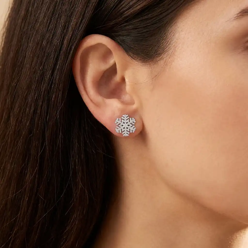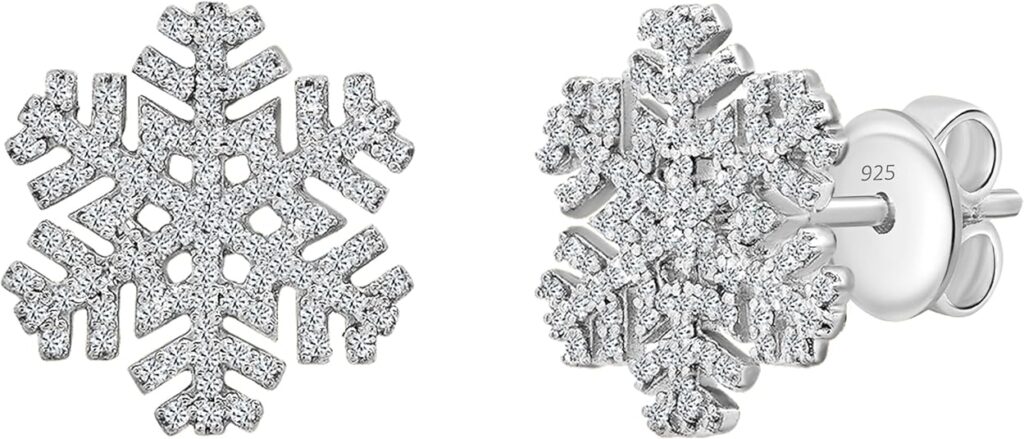 | Snowflake Diamond Studs ASIN: B082QSQ45C | 0.35 ct | Sterling Silver | Snowflake | Feminine Style |